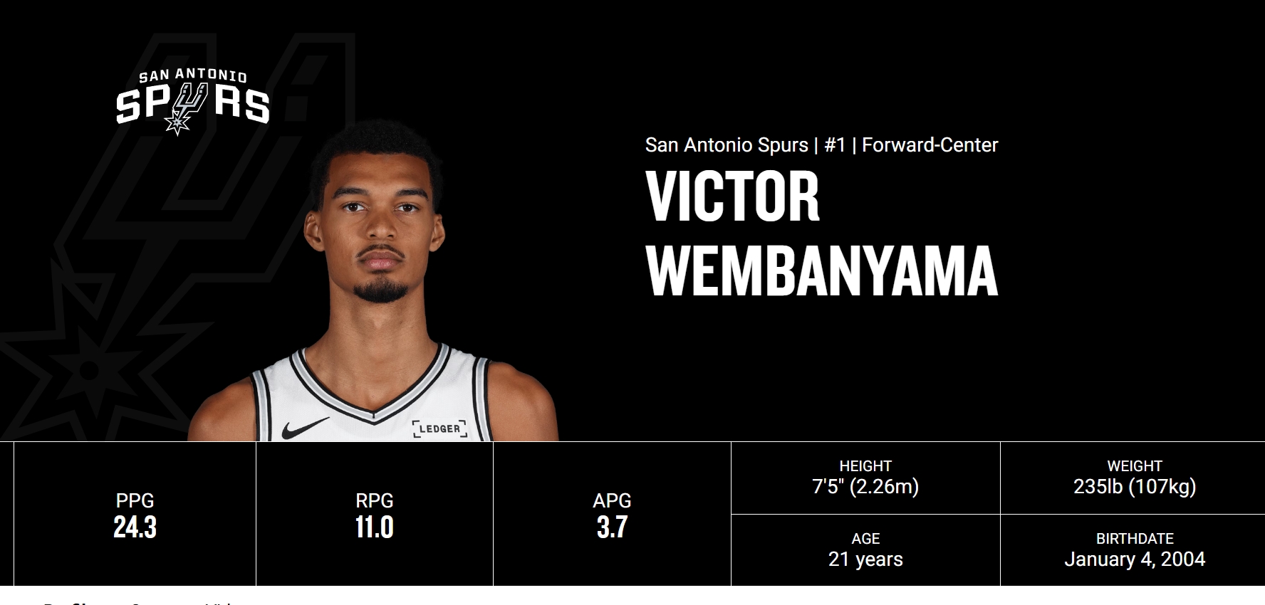 Victor Wembanyama加入NBA時的身高為7呎3吋(2.21米),但如今他已經長高了。馬刺今日在NBA官網上更新了Wemby的身高為7吋5吋(2.26米),足足高了2吋!